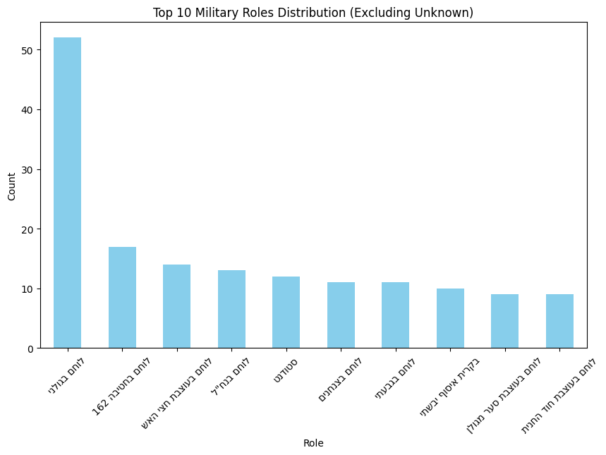 plt.title('Top 10 Military Roles Distribution (Excluding Unknown)')