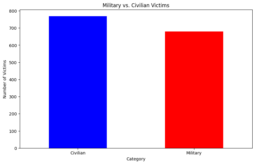 # Visualizing the distribution of military vs. civilian victims